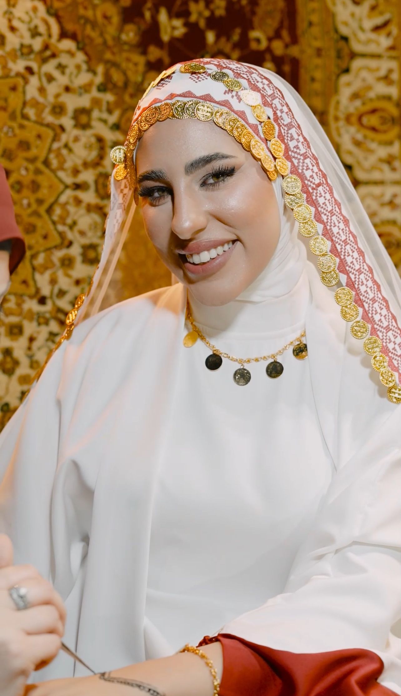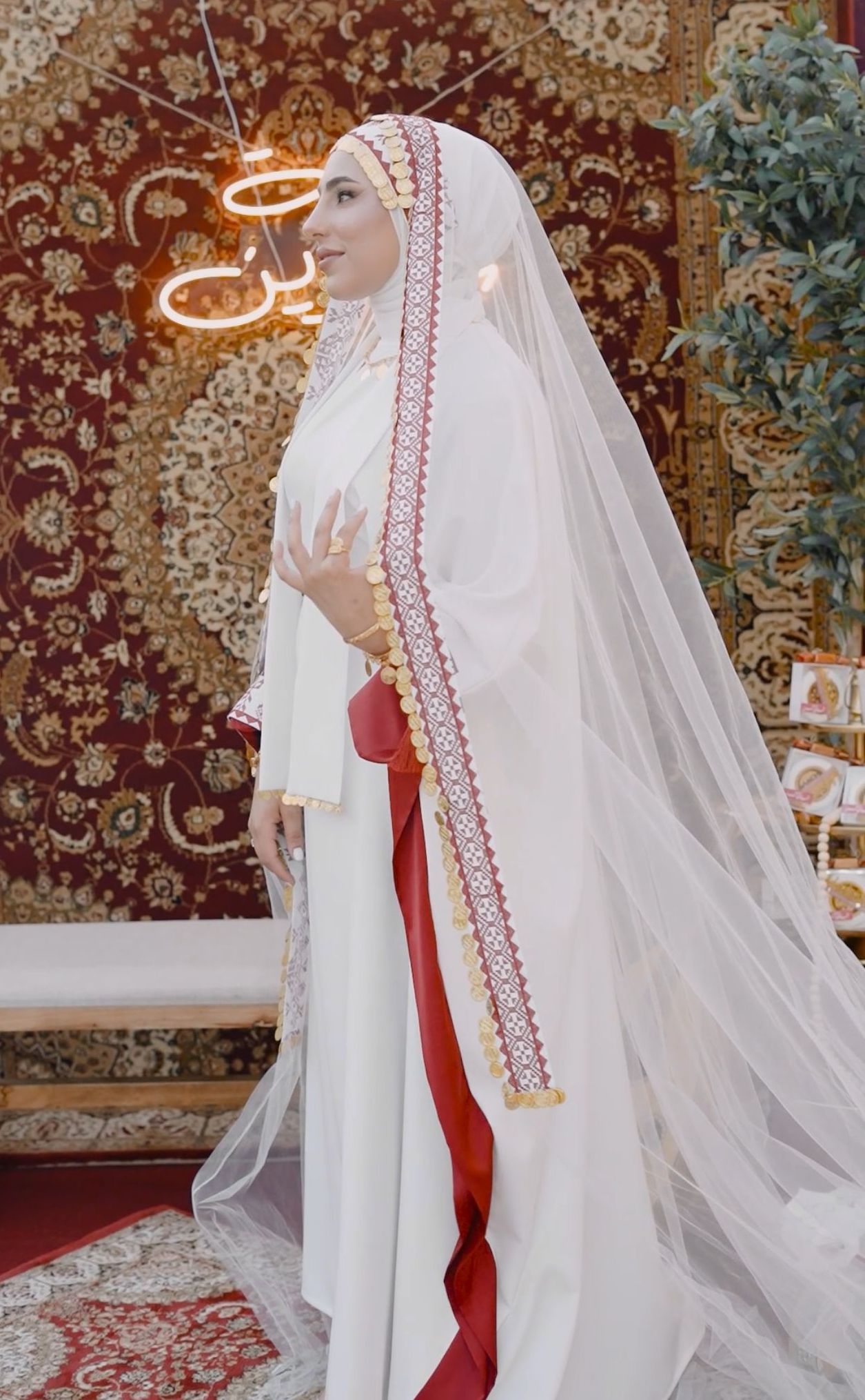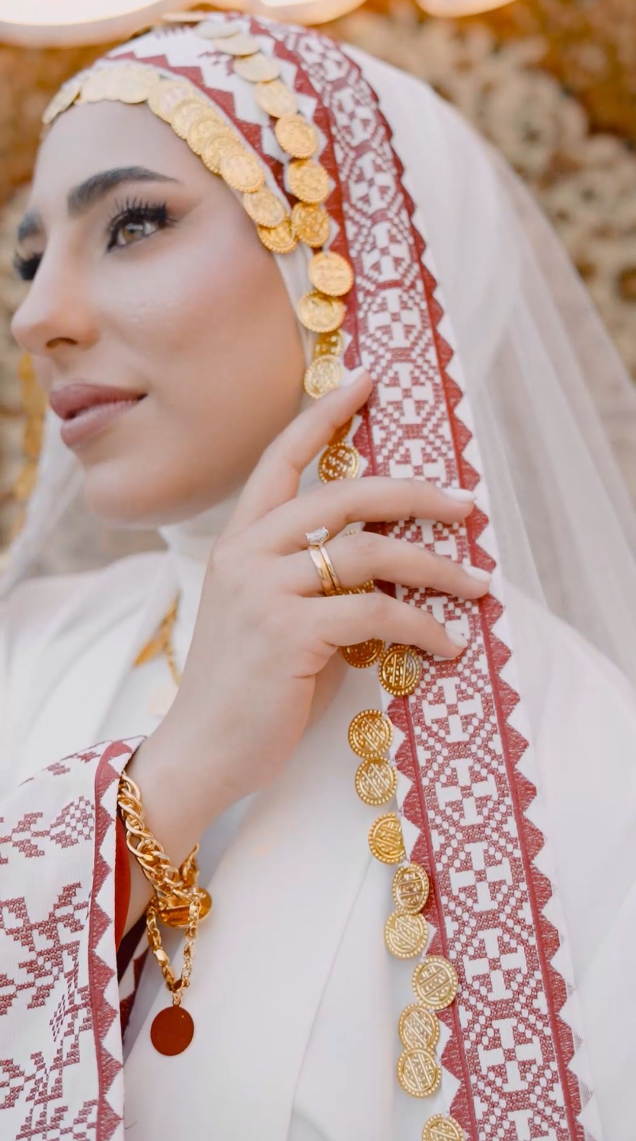 A Special order to our first bride, All the way to Palestine, a Palestinian bridal veil, with golden coins details. As requested from our client.